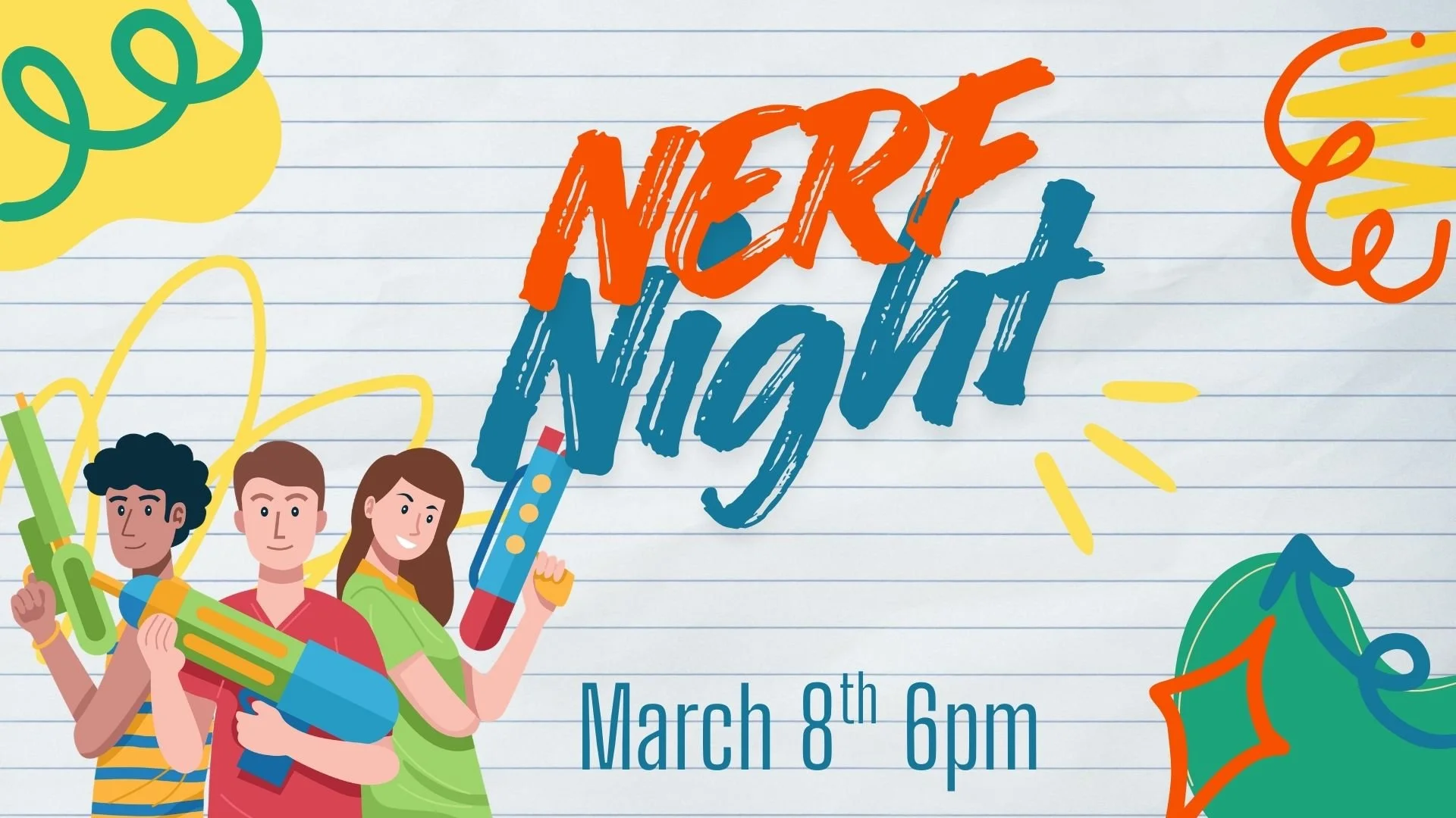 Join us for youth night take over! The children and youth will be having a fun nerf night on March 8th at 6pm